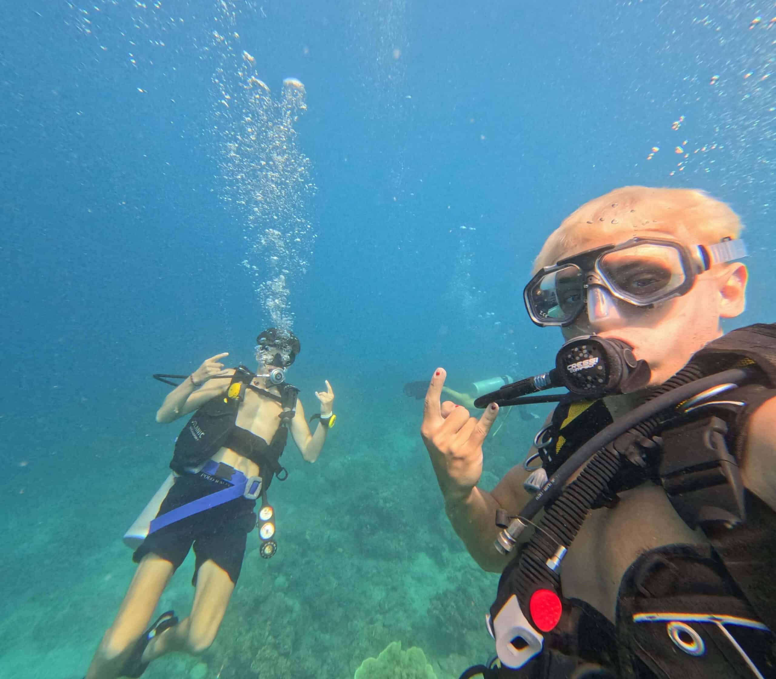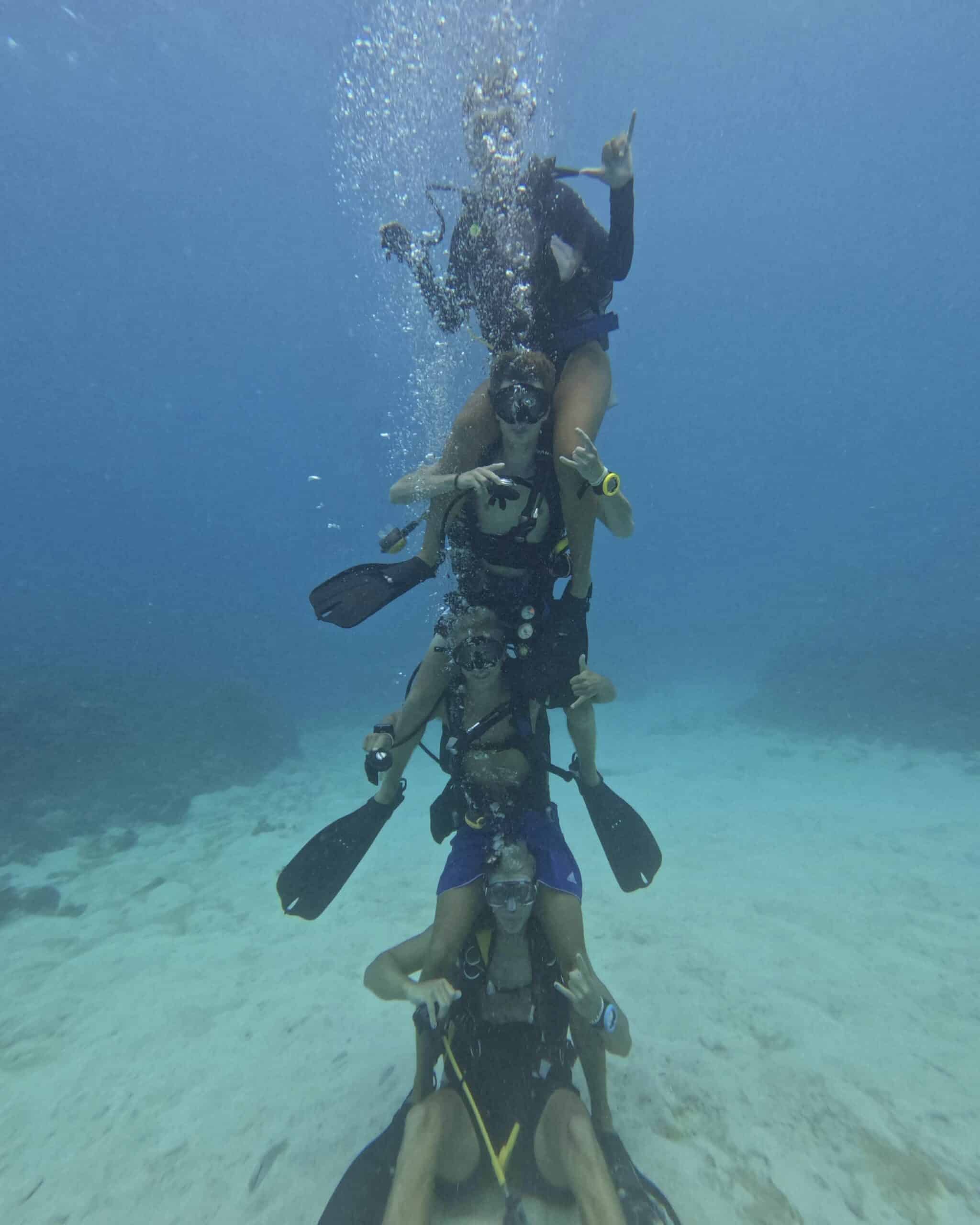 Jeg valgte at tage open water-certifikatet uden rigtigt at have dykket før. Livet og farverne under vandet åbnede en helt ny verden for mig. Jeg kunne ikke stoppe der, så jeg fortsatte med advanced open water og senere rescue diver, mens jeg gik på skolen. I den tid vi har været her, har jeg deltaget i næsten alle dyk, vi har haft mulighed for, samt dykkerturen i oplevelsesugen. Jeg værdsætter så mange erindringer fra de kurser, men de stærkeste er blandt andet: Da vi så en haj på natdyk, dykkerturen med 9 dyk på 3 dage, hvor vi hjalp med coral restoration, og måske mest af alt da jeg tog rescue sammen med mine tre medentusiaster. At være en del af et fællesskab, hvor alle har samme engagement som én selv, giver så meget livsglæde.