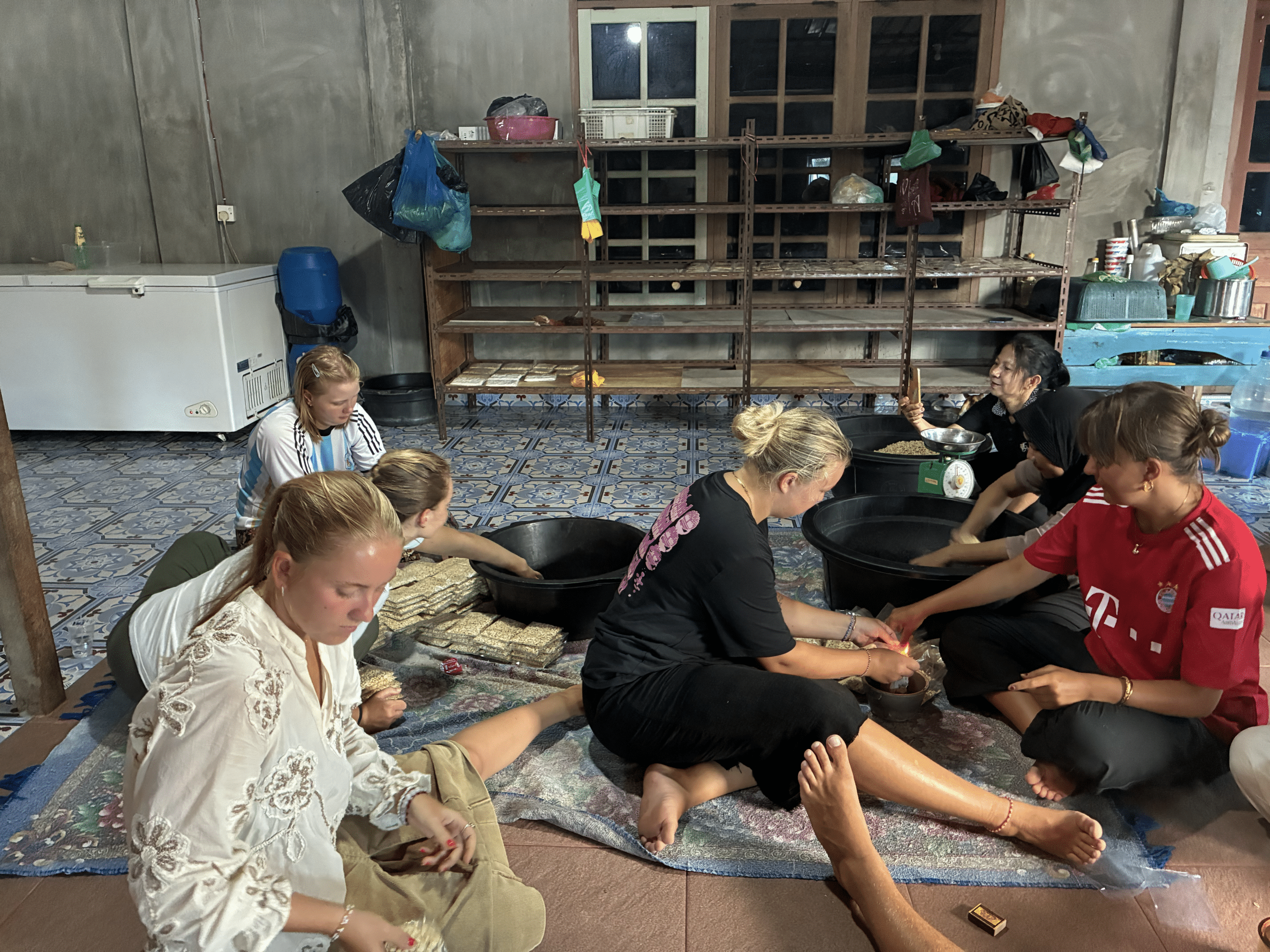 Vi bor i hytter af fem eller seks personer. I min hytte har jeg fundet en kæmpe tryghed og vi har skabt et rum, hvor der er plads til både grin, dans og de mere seriøse samtaler. Sammen har vi lavet små hyggelige traditioner som jeopardy til hytte-middag, forfest på terrassen og taste test af forskellige indonesiske snacks efter festerne.