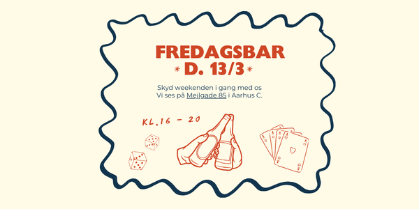 D. 13 marts inviterer vi til fredagsbar fra kl. 16-20. Kom i god tid, så du kan være med til quiz kl. 17.